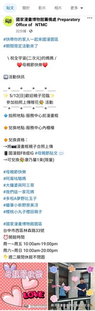 [情報]母親節攜帶母親至國家漫畫館合照上傳送康乃馨
