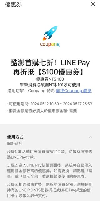 推 mllchen: 七折+line pay 9折爽爽用 39.14.57.133 05/13 09:38