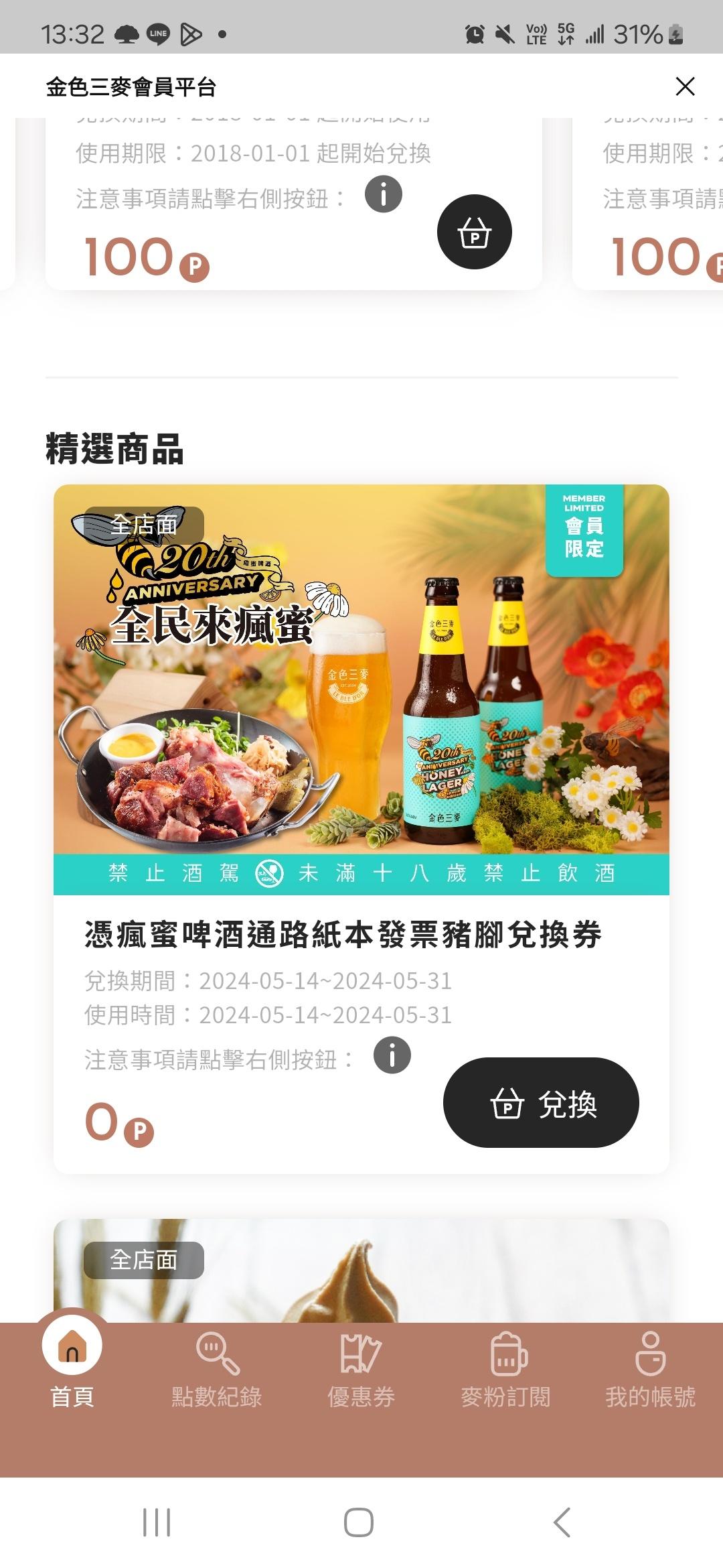金色三麥會員5/14-31買瘋蜜啤酒送內用德式豬腳 要在今日(5/13)23:59前先加入會員才能拿到系統發出的優惠券! 我還沒喝過瘋蜜啤酒不曉得口感如何!? 大家的20歲生日都怎麼過? 金色三麥餐廳今年20歲,準備要揪你瘋起來慶祝 一生一次的限時、限量, 怎能不跟上! 限量瘋!為慶祝20週年釀造的超限量 #瘋蜜啤酒 龍眼蜜失心瘋爆量150%、冷泡高香型啤酒花,帶來爆炸性濃蜜奇香, 賣完不再補貨(因為太瘋),喝一瓶少一瓶! 限定瘋!會員限定同慶「買瘋蜜、送豬腳」 5/14-5/31金色三麥會員持5月份「通路購買的2瓶瘋蜜啤酒350ml紙本發票」, 加上會員系統發送的「德式豬腳電子兌換券」,到全台金色三麥餐廳內用, 即可兌換「德式豬腳」乙份! 需在5/13 23:59前加入會員,不然會收不到電子兌換券呦 金色三麥20週年慶限定 瘋蜜啤酒 全台通路熱賣中: 7-11|全聯|全家|家樂福|大潤發|寶雅 立即訂位https://supr.link/w6V5h #金色三麥20週年 #為歡聚而誕生 金色三麥 https://i.imgur.com/9QxaMDc.jpeg