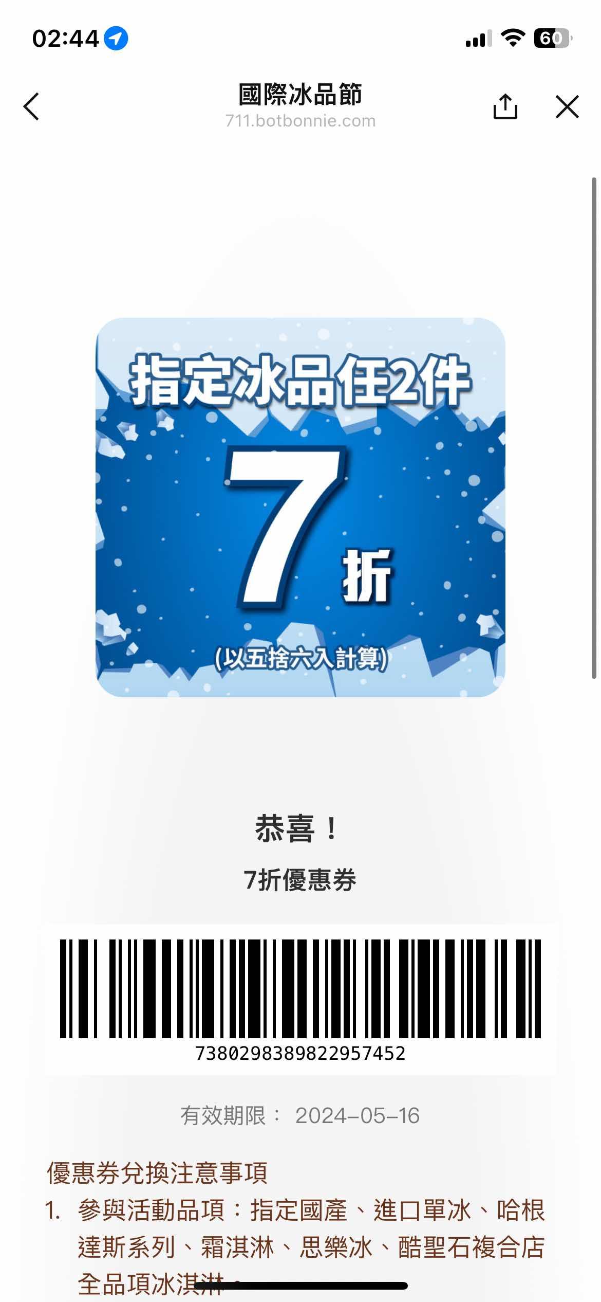 推 wally840503: 7-11的Line也可以抽兩次喔 101.10.44.245 05/16 14:27