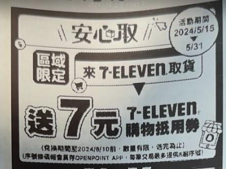 → a74127412: 早上取貨有7元購物金 101.9.135.66 05/16 20:22