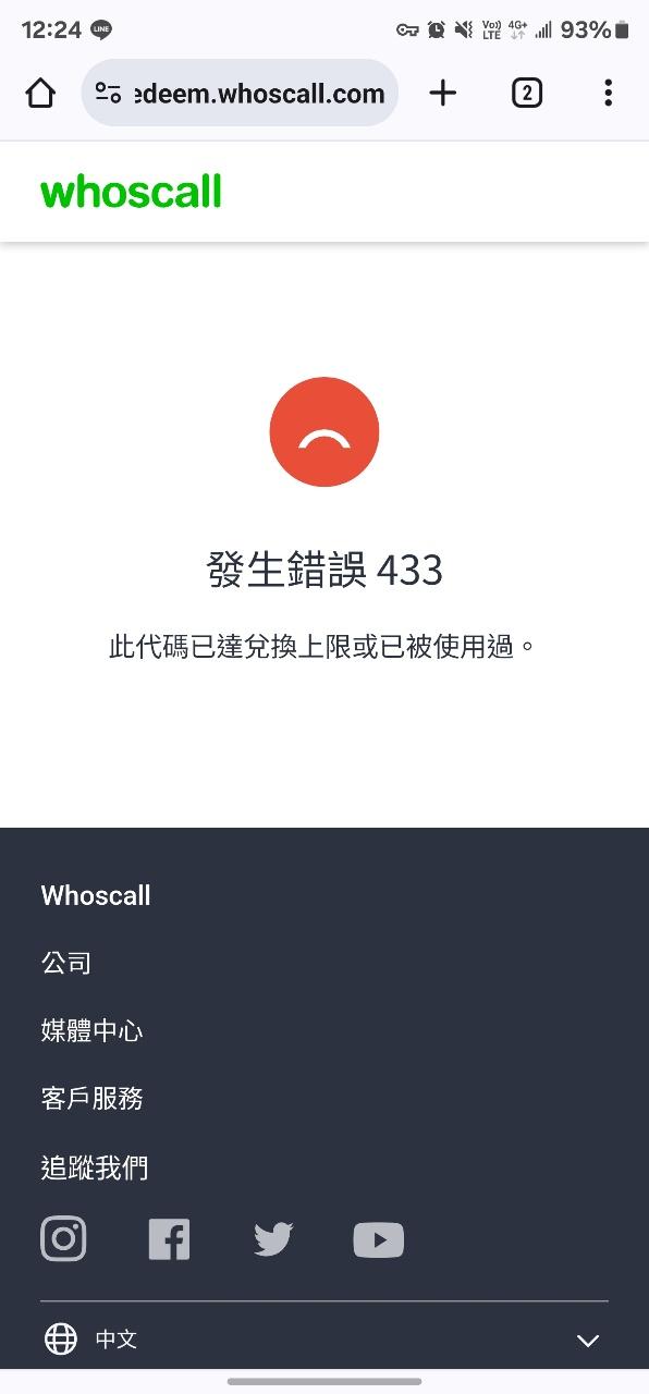 yarus: 此代碼已達兌換上限或已被使用過。 163.16.248.129 05/22 11:55
