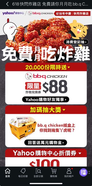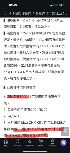 標題[情報] Yahoo領bb.q CHICKEN $88炸物兌換券