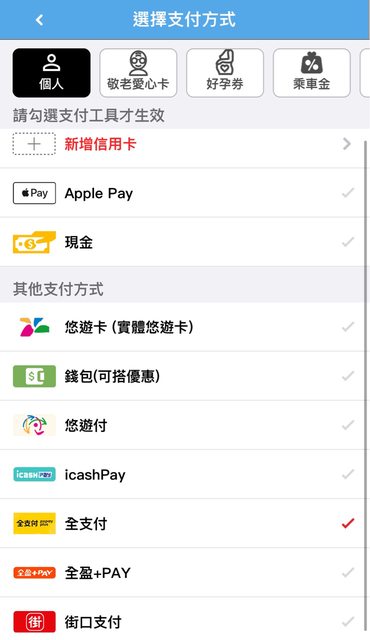 可以!有這些付款方式,覺得滿多元 我是用全支付(綁定台新gogo卡有回饋) https://i.imgur.com/1UBbfmQ.jpeg