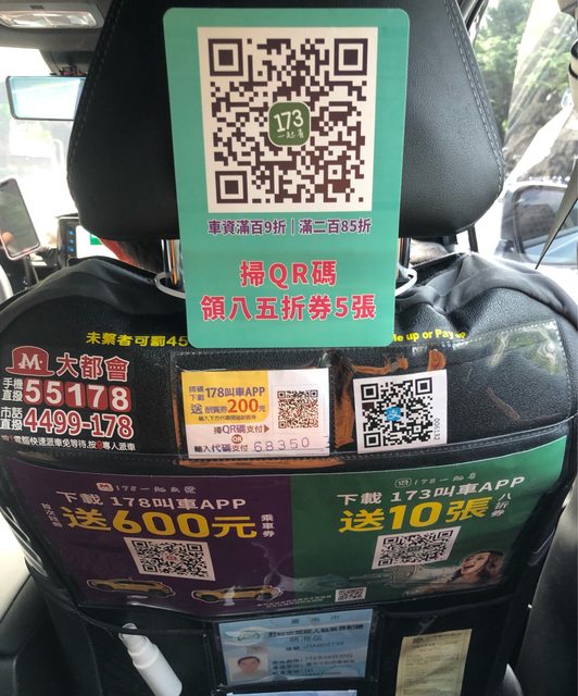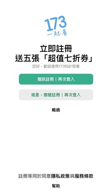 平常都用 55178 大都會計程車 app 叫計程車來坐,上車後就看到張貼的廣告 詢問駕駛後173叫計程車,是新的叫車app 也就是他們都可以透過這些app接單 透過傳送簡訊或撥打電話線上註冊 不用打任何帳號密碼就可以註冊,超快速 滿100元可使用9折券 (期限一年) 滿200元可使用85折券 (期限半年) 滿300元可使用8折券 (期限一年) 新會員有送5張7折券 (期限一年) 使用app先設定上車和下車地點 就可以事先預估車程一趟大約多少費用 來設定要使用幾折的優惠券 以及付款方式,我是選擇全支付直接扣款 我這趟費用預估超過200元,選擇8折券 第一次叫車,轉了一分鐘叫不到車 XD 系統跳出建議給小費加費,或改用9折券 第二次叫車就選擇9折券,成功有叫到車 這一趟我搭車費用235元,使用9折後 應該是212元,系統顯示扣款215元 我覺得3元沒差,還是有省到錢 全支付還有回饋6點,也分享給大家 https://i.imgur.com/DATr2EC.jpeg