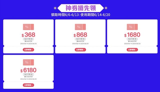 神券搶先領:6/6-6/13開放領券(需要先領券才可以用)