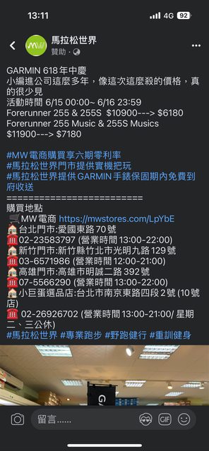 推 asidy: garmin官網購買通路>實體門市可搜市或區 112.104.66.246 06/15 15:30