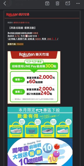 剛剛收到mail傳來昂路名鞋館的618優惠信