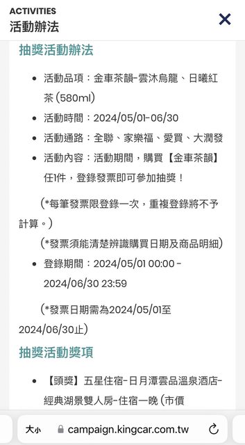 標題[情報] 買金車茶韻登錄發票抽日月潭雲品酒店