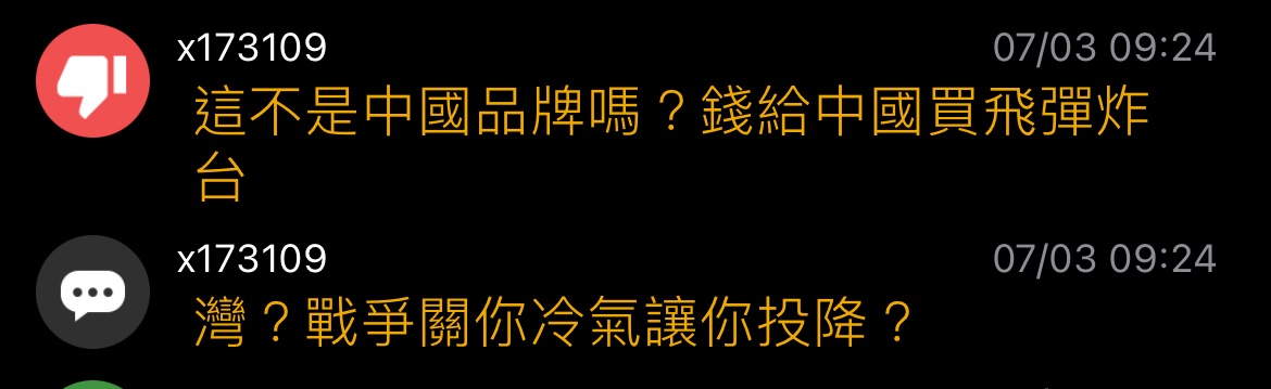 噓 x173109: 這不是中國品牌嗎?錢給中國買飛彈炸台 223.139.62.136 07/03 09:24