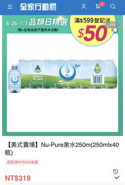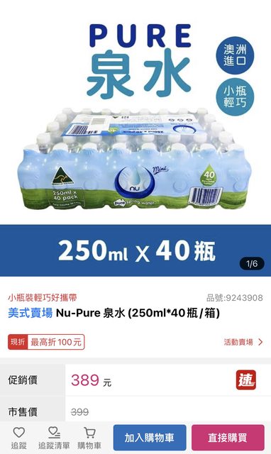 標題[情報] 全聯澳洲Nu-Pure泉水40瓶$238