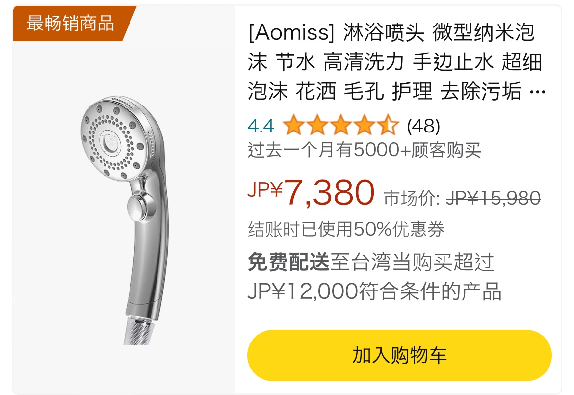 推 weldom0830: 我剛買2支蓮蓬頭10098日幣附近 182.233.24.41 07/09 20:10