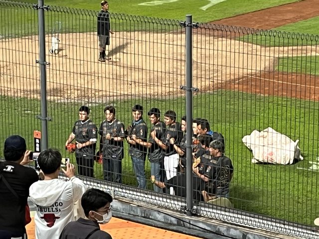 也就出來繞場跟著昔日的夥伴及對手中信兄弟一一致意