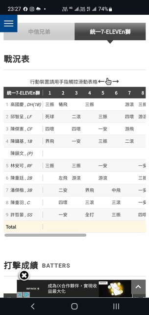 就附上這場的戰況表, 也是紀錄一下這場比賽的打擊內容