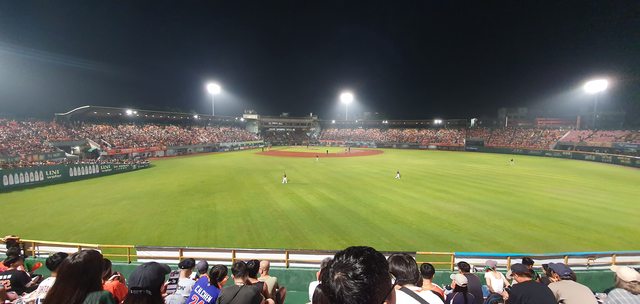 很久沒在球場待到跨日了 (印象中可能是下雨延後開賽有遇到)
