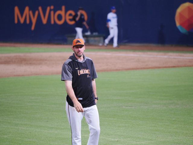 賽後走來三壘側指定遞球給小朋友的羅昂