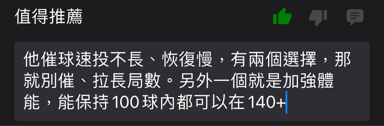 推 a60525025: 大餅自己就速球派的 喜歡球速快的很正常 而且詔恩 古 06/03 09:23