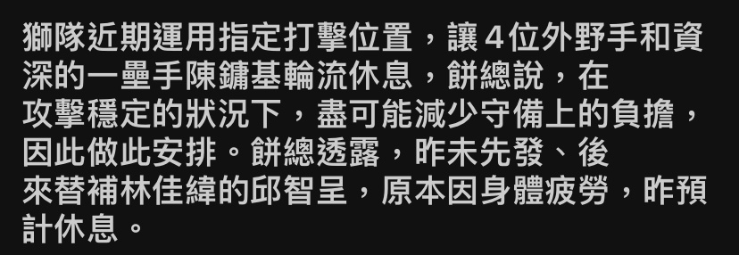 → oscar8721184: 那我來猜猜明天外野 小黑四爺冠宇 06/14 22:35