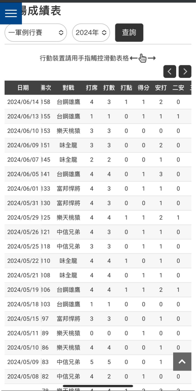 → dolih147yy: 野革近10場我喵打擊數據 06/15 08:57