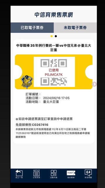第一次來大巨蛋現場看球,今天台北外面下著滂沱大雨,只能說大巨蛋真的好讚,完全不