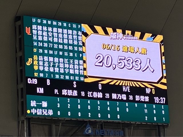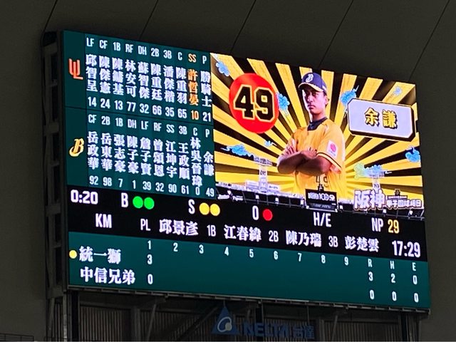 有發現這次大巨蛋螢幕的計分板顯示器,兄弟有復刻阪神甲子園主場計分板的格式,這點