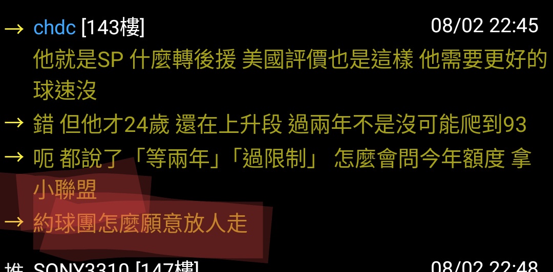 → chdc: 約才有跟日職競價的能力 講的不會放一直都是連簽約金都拿不 08/02 23:02