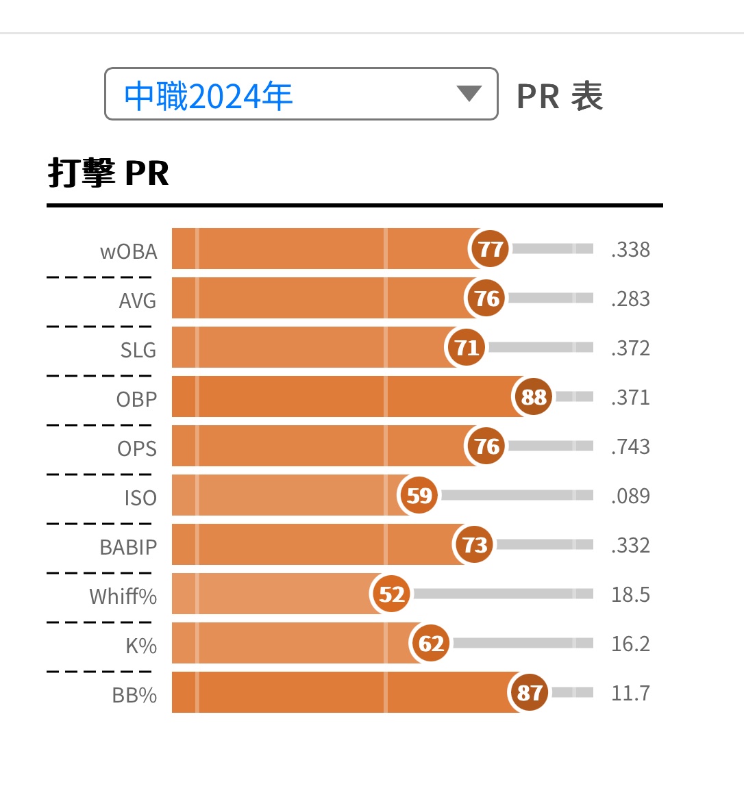 推 deltz: PJK去年BB%甚至是PR96餒 要確定他選球還沒top 前年也PR71 09/22 18:09