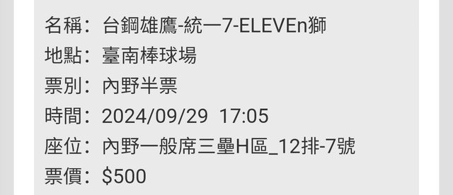 標題[贈票] 今日三壘半票一張