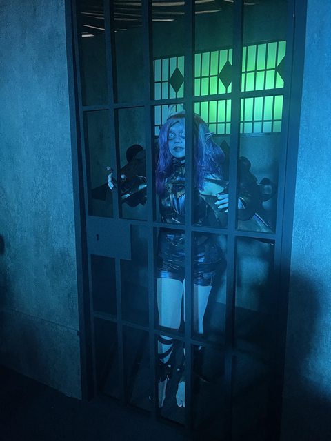 過第二扇門就看到布蕾爾被關在柵欄內,不得不說妝處理得很好真的挺恐怖的