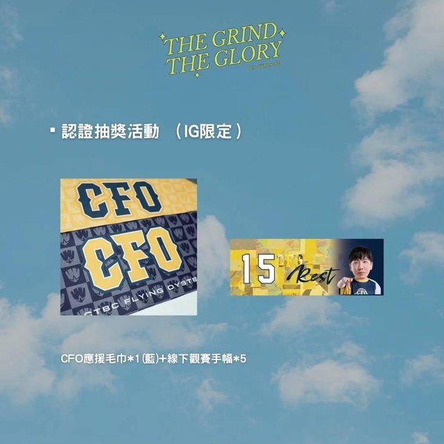 獎品:CFO應援毛巾藍色款一條+春季賽陣容手幅一組(一人獨得)