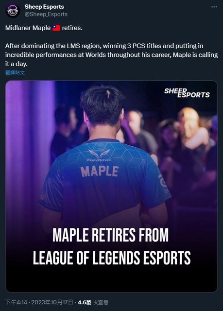 推 a2364983 : Reddit頭版第一篇就是Maple Retires 有人在搞 10/17 19:12