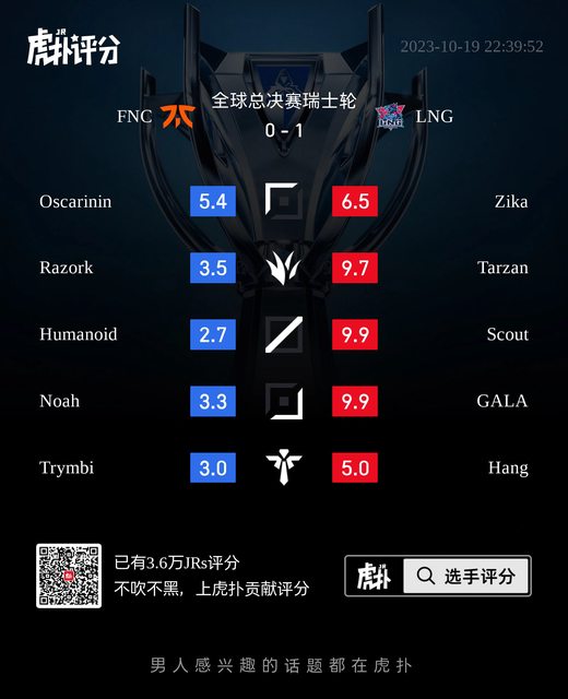 標題[閒聊] LNG vs FNC / BLG vs KT 虎撲賽後評分表