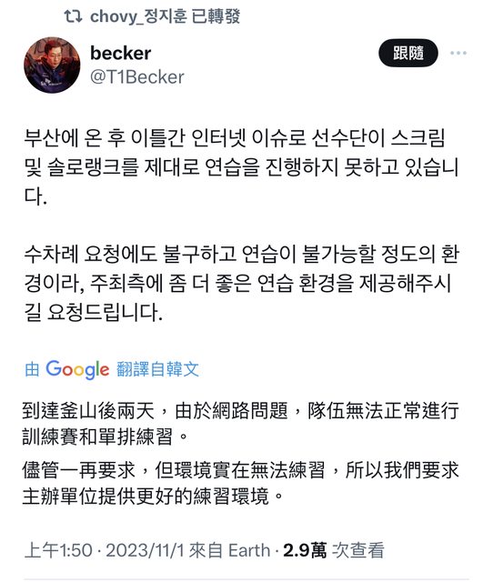 推 S890127 : 這篇抱怨文被Chovy轉推了 11/01 02:21