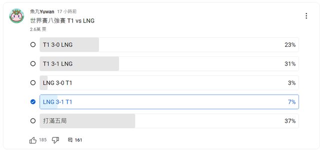 推 franky30247 : 你忘了看成份 在b站底下投票都LNG贏 7 80% 實際上 11/05 06:52