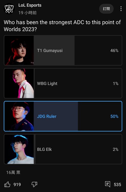 推 yln860331 : 沒啦 這投票其他位置全都t1第一 只有姑媽第二 所以 11/09 21:26