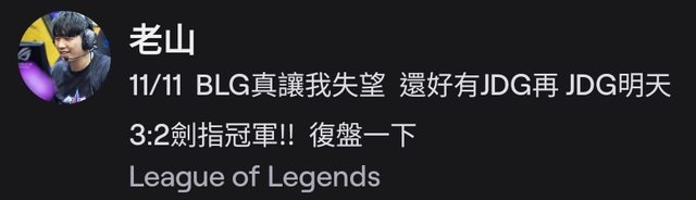 推 nakato : 老山在lng倒那天就奶jdg了,但我t1粉還是抖爛 11/11 21:01