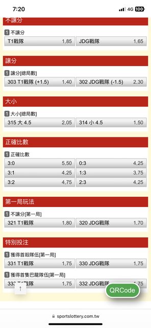 推 date0714 : t1 3:1贏 賠率已透露了 11/12 09:07
