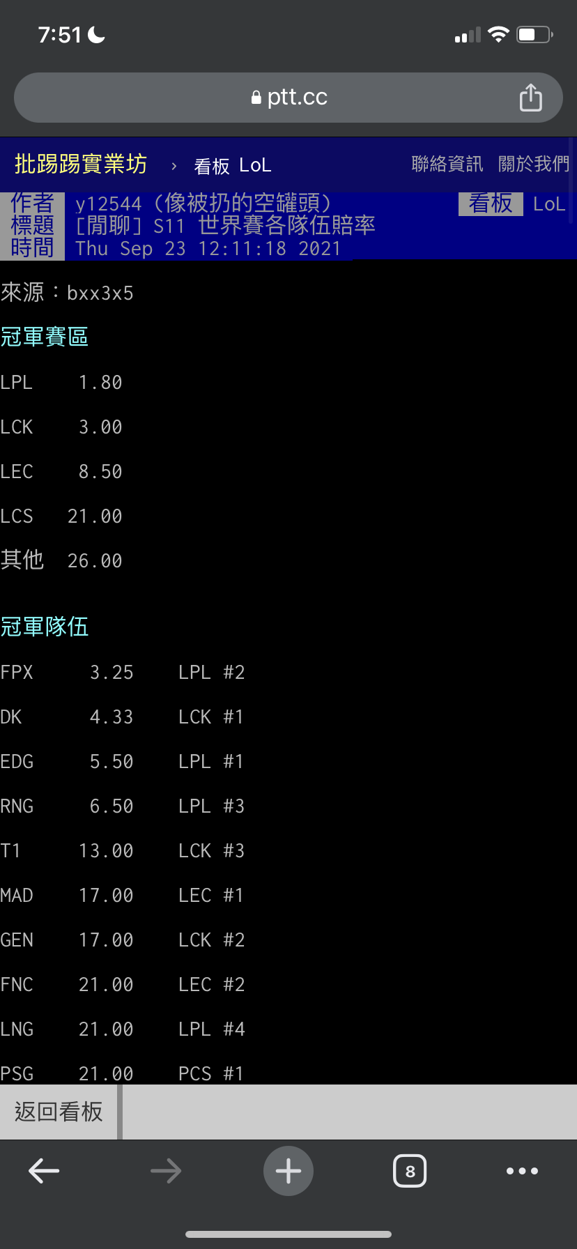 → c871111116 : 至少S6前沒有人在賠率吧 11/12 19:51