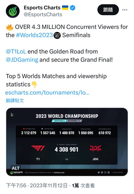 推 a125g : 決賽會超過 WBG是超級流量隊 11/12 20:27