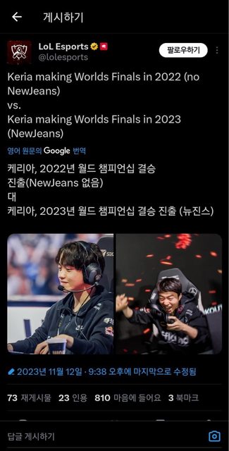 推 peihsin1124 : Faker: New Jeans nice 11/13 00:15
