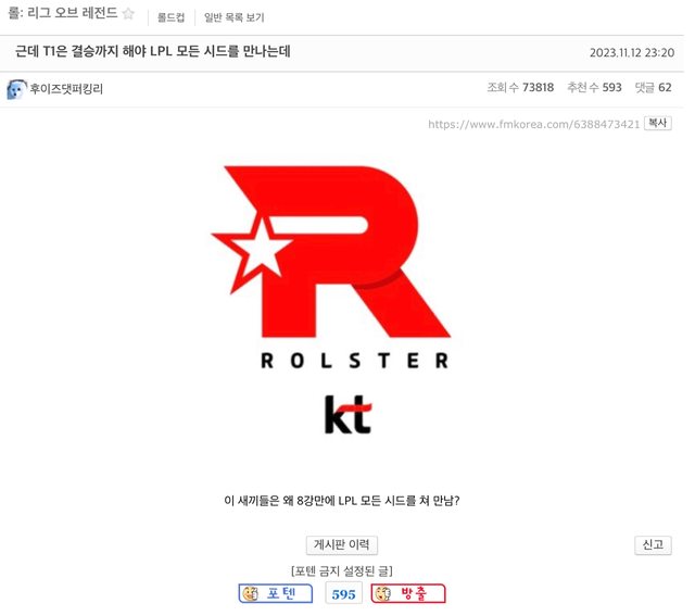 推 live147222 : 如果T1在韓國主場完成一穿四,LCK粉絲可以直接完成11/13 00:06