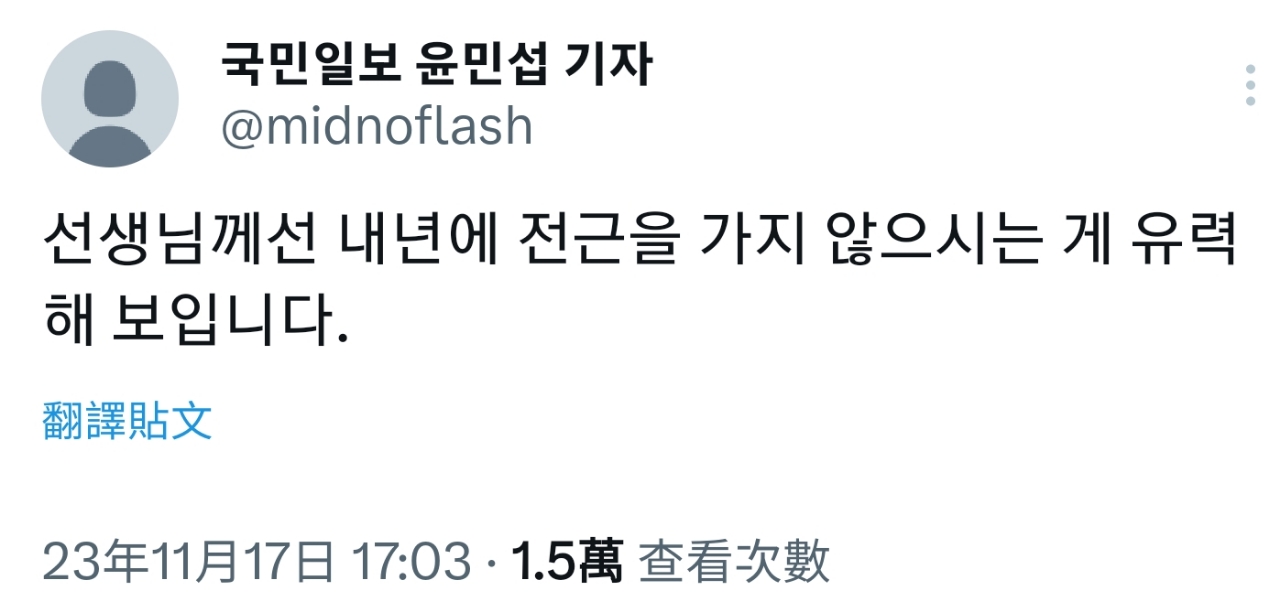 → a86851247 : 明年一定是最後一年了 韓國28就是極限了 11/17 18:47