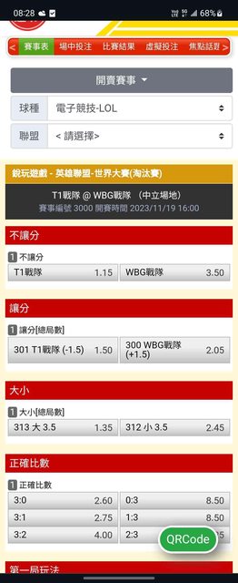 推 MS006872 : WBG +1.5 表示 T1 3:2勝 或是 WBG贏都拿到錢11/19 10:45