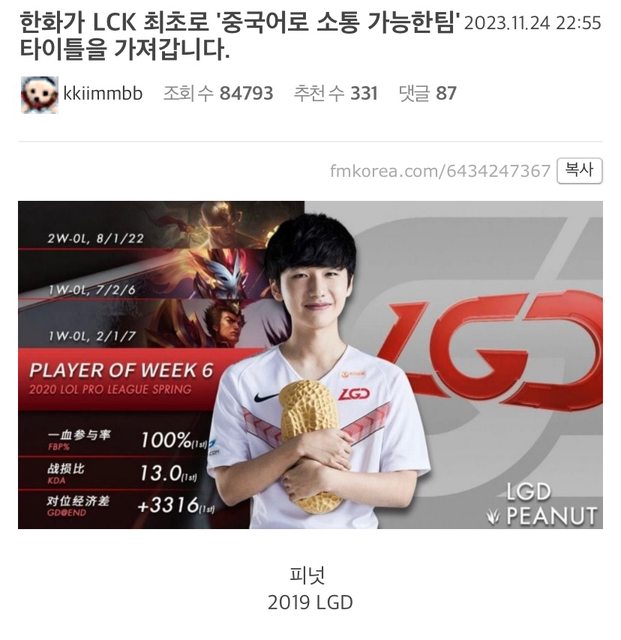 推 good5755 : 花生都說他中文幾乎要忘光了 講中文是LPL粉留言吧 11/25 13:09