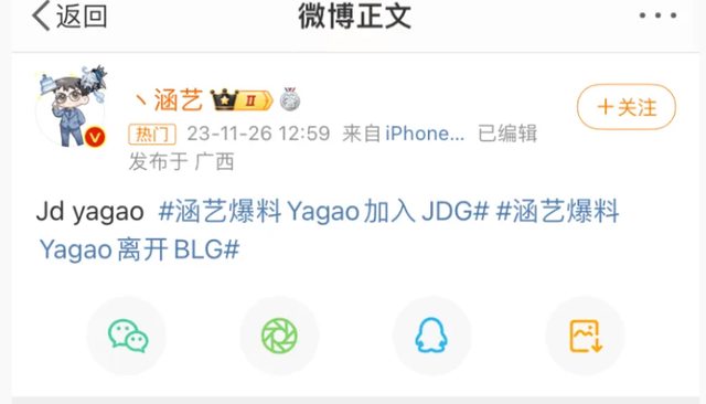 推 WiLLSTW : 已經在互噴了 BLG超話超級不想要左手去 11/26 16:20
