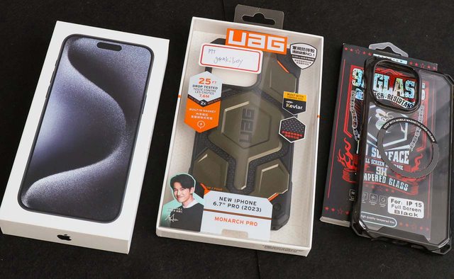 【附贈】全新鋼化保護貼一片(原本手機上已經有貼)、半透明保護套、UAG MONARCH PRO