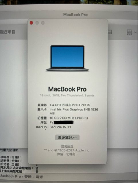 標題[販售] 雙北 Macbook pro 13 a2159 16G 128G