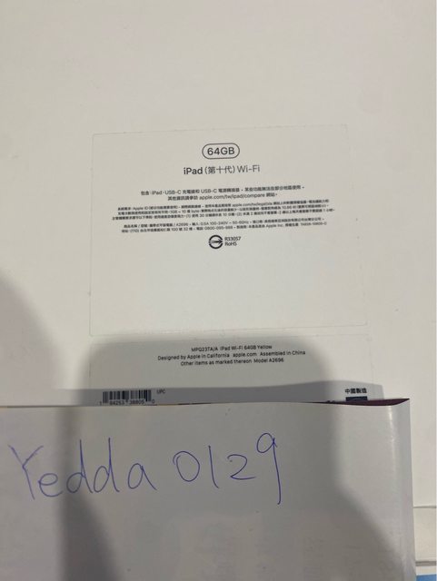 2.iPad 10 wifi 64g 黃色 全新