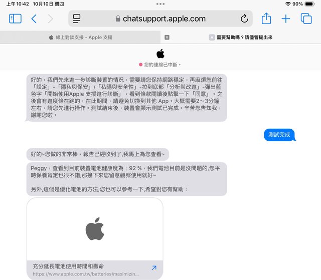 10/10電池健康度:92%
