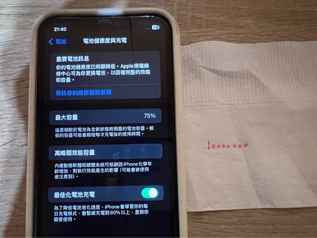 頂部有輕微擦傷,電池健康度75%,附犀牛盾手機殼、全新耳機